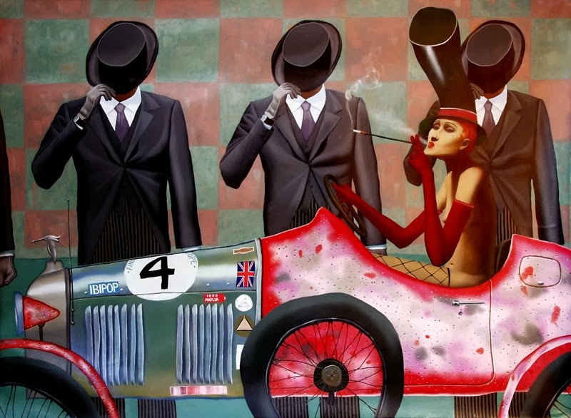 Naturale quindi la sua decisione di proseguire i suoi studi nell’arte, frequentando il Krasnodar Art College che lo ha portato a nutrire un intenso fascino per l’estetica del surrealismo con le sue allusioni paradossali e combinazioni fantasmagoriche. Ma evidenti sono anche molte altre influenze, prima tra tutte quella della scuola olandese, e dei dipinti ad olio di Jan Van Eyck, di cui cerca di assimilare quella luce morbida che sembra avvolgere i soggetti e le figure, mentre nelle sue opere grafiche si è lasciato ispirare dalla severità ironica del pittore tedesco Otto Dix. Il suo obiettivo principale è creare l’arte del Revival Nord, evocando pubblicità d’epoca in stile liberty che si fondono con simbolismi della cultura russa per evocare significati più precisi e profondi, e portando così ad una fusione tra neoclassicismo e arte moderna.
