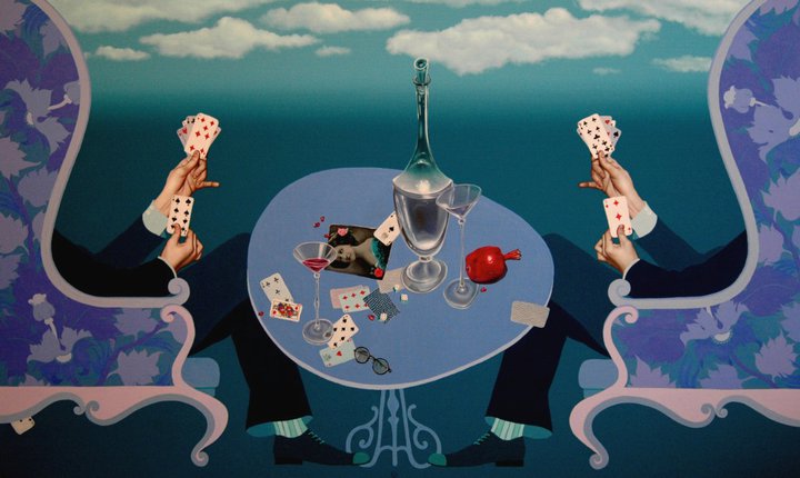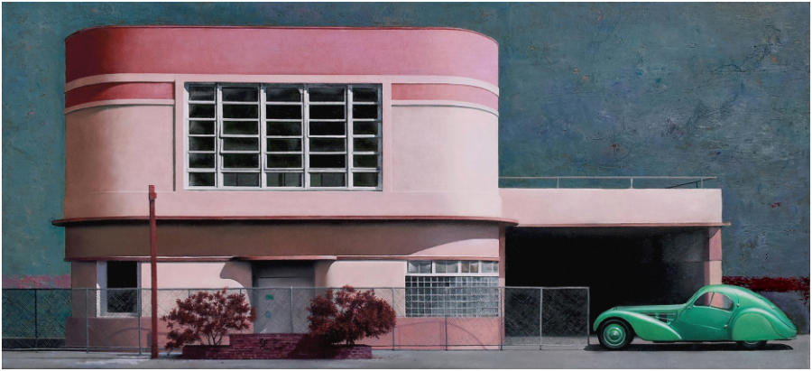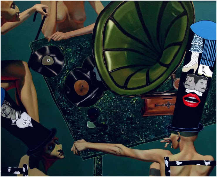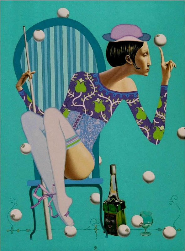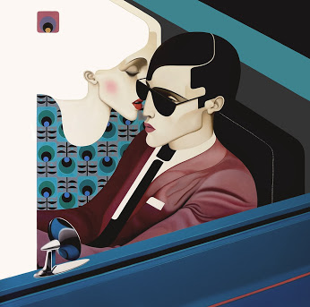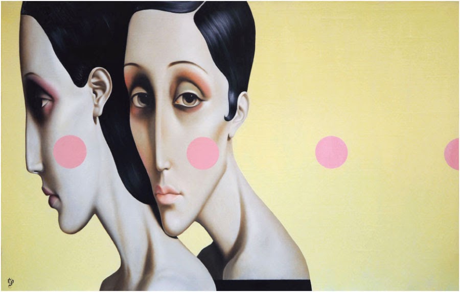 Vernici opache, zigomi esagerati, mento angolare, sopracciglia inarcate, questi i tratti distintivi delle sinuose figure dell’arista russo Slava Fokk, che, con la sua pennellata sottile, da ai suoi personaggi un aspetto quasi ultraterreno. Chiaramente ispirato dall’Art Decò, il lavoro di Fokk vive in un mondo geometrico pieno di dettagli sorprendenti, dalle linee eleganti e i colori audaci. Spesso, infatti, i personaggi che popolano il suo mondo stilizzato sono accompagnati da ornamenti che prendono il più delle volte la forma di fiori, elaborati pizzi e modelli di carta da parati che con la loro tessitura ripetitiva richiamano appunto quelle di un’altra epoca. La sua tavolozza è intrisa di bordeaux, verde acqua e schemi di colore beige, che conferiscono il tocco retrò evidentemente ricercato nella sua opera.