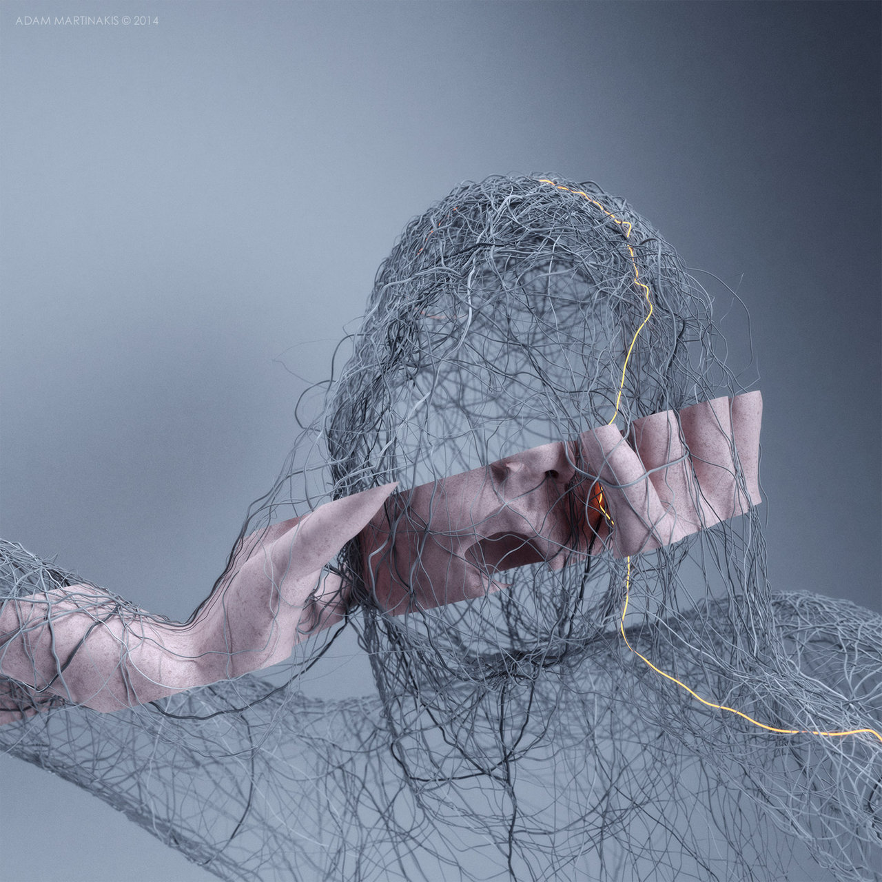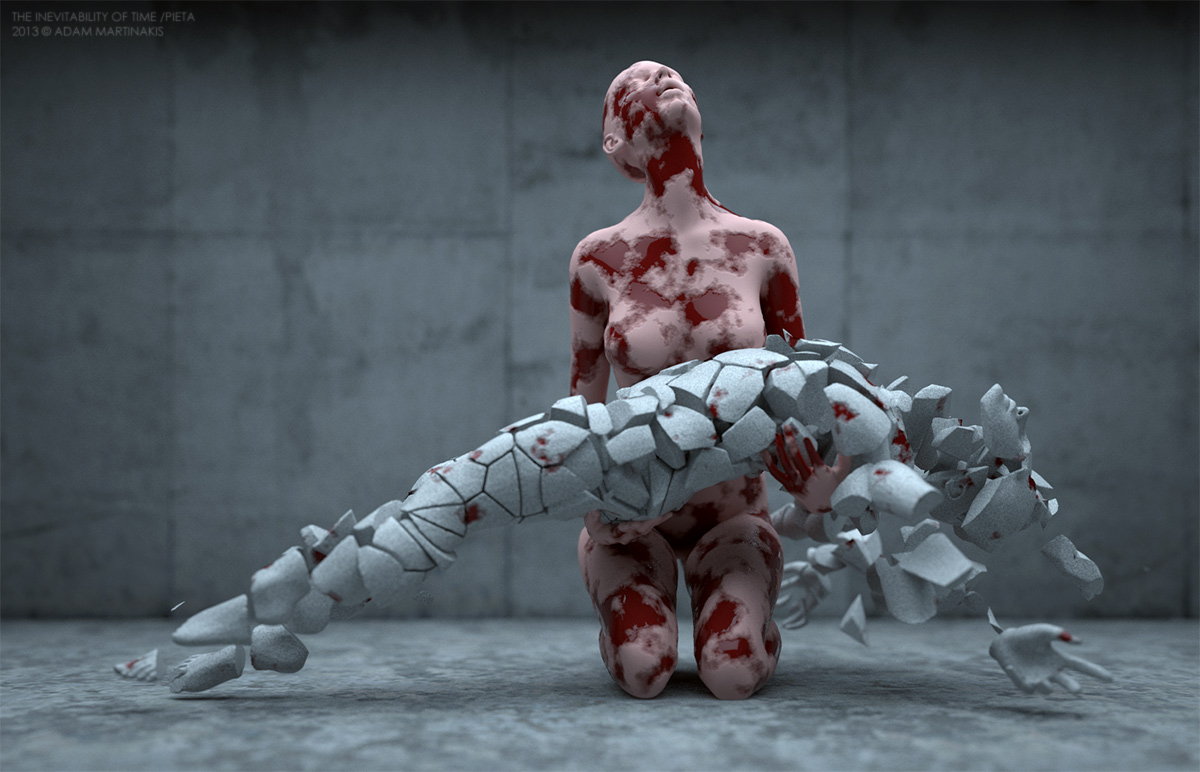 Poco si può aggiungere alla descrizione che l’artista Adam Martinakis fa della sua stessa arte. Un insieme di emotività e freddezza, un fermo immagine che riesce a cogliere nella sua stasi il turbinio proprio della tensione prima dell’esplosione.