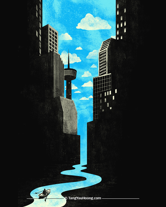 Tang Yau Hoong è un giovane malese, non ancora trentenne, che ha reso la sua immaginazione il suo lavoro. Nato a Kuala Lumpur e laureatosi in Ingegneria Meccanica, Tang Yau Hoong ha cominciato per gioco l’esperienza del Graphic Design partecipando ad alcuni concorsi per la progettazione di t-shirt, aiutato da un suo compagno di studi dell’università . Da hobby l’illustrazione ben presto si è trasformata in un’occupazione a tempo pieno, e attualmente è la sua unica attività .